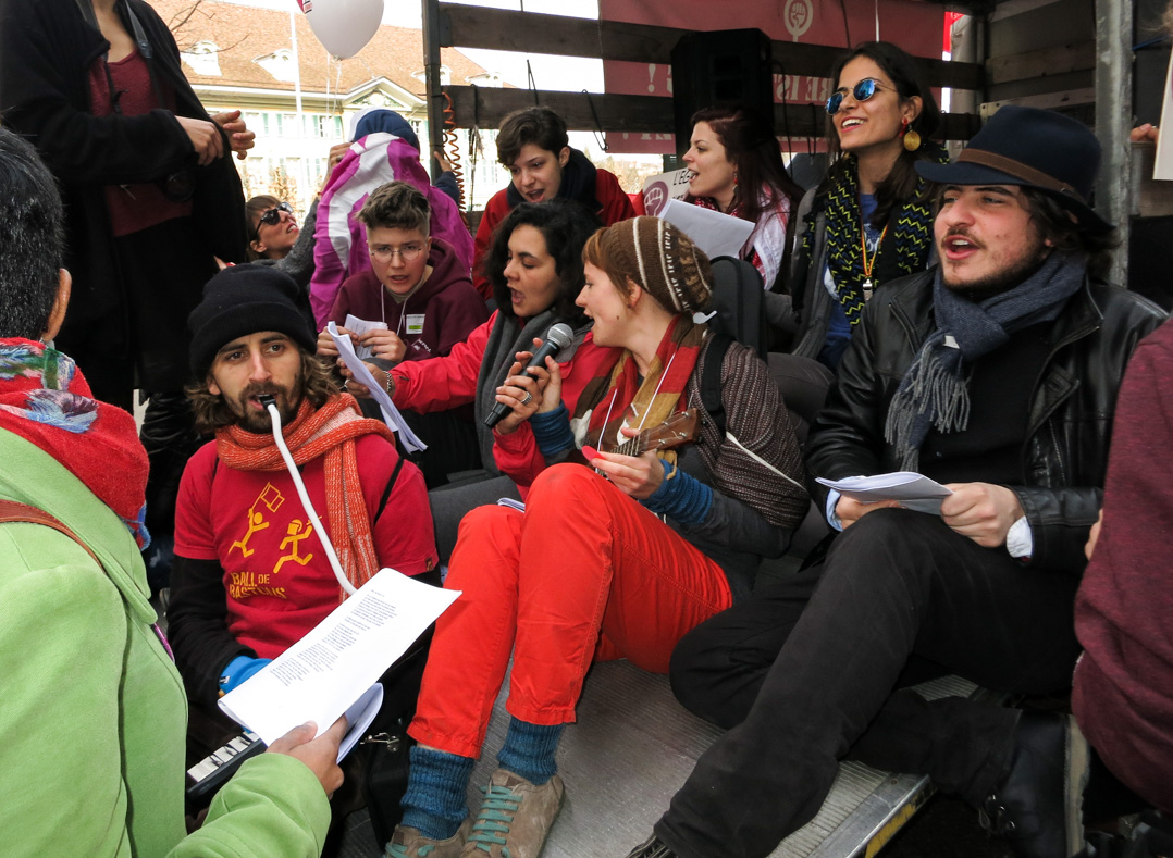 A Berne, Terre des Femmes et Caritas organisent des actions contre la mutilation génitale des femmes et des filles (une pratique qui pèse sur plus de 15'000 femmes en Suisse) et s’allie, ensemble avec la MMF à la campagne d’Amnesty internationale centrée cette année sur le conflit syrien. Du 7 au 12 mars, Raneem Ma’touq et Amal Nasr parleront à Lausanne, Genève, Berne, Bâle et Zurich de leur vie en Syrie, des causes de leur fuite et de leur engagement pour les droits humains et plus particulièrement des droits des femmes. www.amnesty.ch/fr/sur-amnesty/manifestations. Revolutionärer Aufbau Zurich appelle pour le 12 mars à une manifestation féministe en soutien à la résistance de Rojava (Kurdistan turc). http://www.frauenbuendnis-zueri.ch. A Bâle un film suivi d’un débat déclinera au féminin la question de la démocratie et de la citoyenneté www.cfd-ch.org.