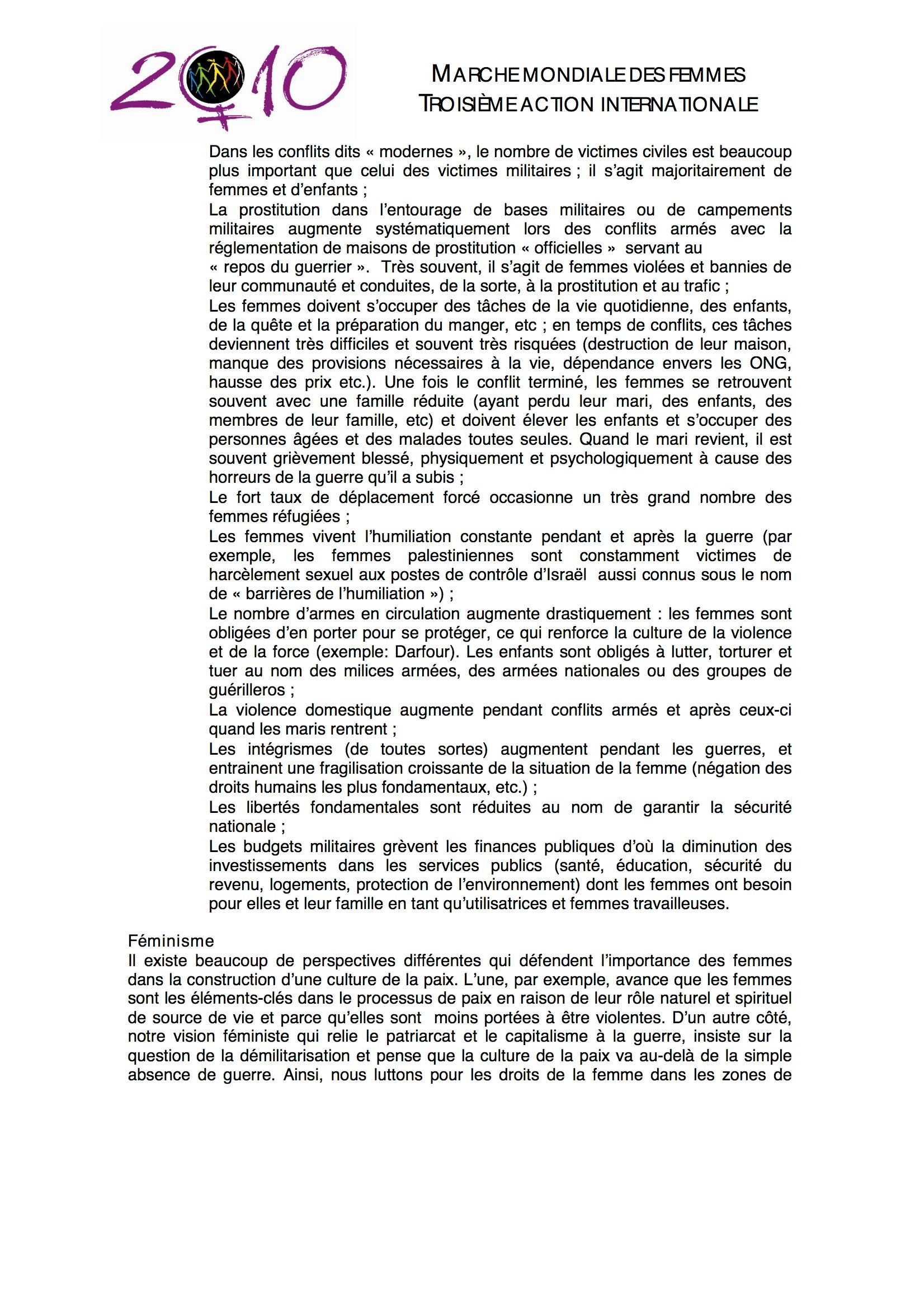Nous vous invitons à lire la prise de position adoptée par la MMF au niveau international en 2010 et à suivre les actions de la MMF en vous rendant aussi sur le site www.http://www.wmw-2015.info/